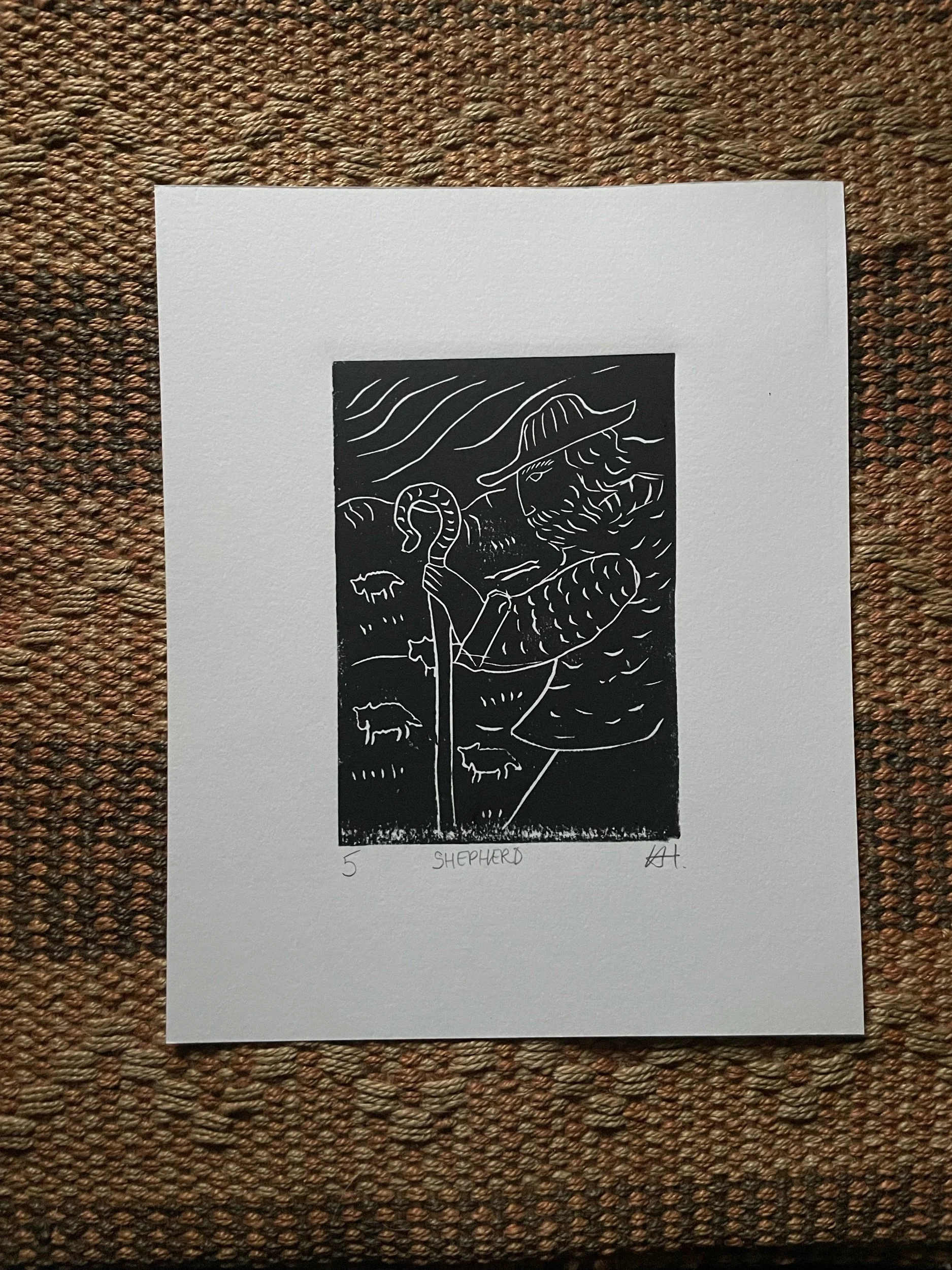 It is an original print, using black oil based printing ink, printed on to a textured, mid-weight printmaking paper.